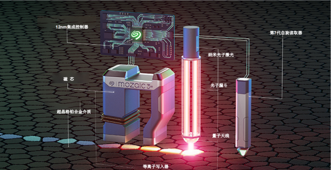 希捷计划将纳米光子激光器垂直集成到等离子体写入器子系统中。Dave Mosley博士表示:“我们为Mozaic 3+ (魔彩盒3+)自主开发了独特的激光技术,将确保更高的效率和产量,以支持快速规模化的批量生产。”